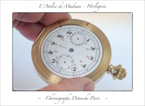 Le mouvement chronographe Detouche Paris, orphelin à l’origine, dont le rhabillage fait suite au projet...